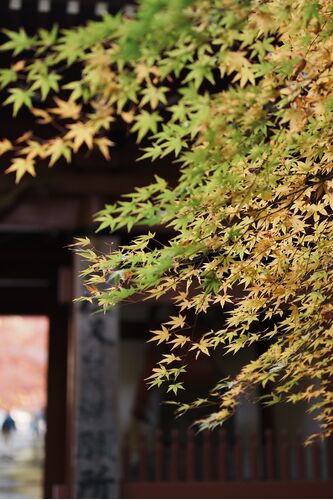 適度に緑が混じる感じも綺麗ですね♪ 石段下のお堂の屋根を入れて。 背景の少し明るい部分に明るめの紅葉を合わせて。 角の雰囲気がカッコ良くて♪ 似たような写真が多いですが。 少し人を入れて撮りたくなって。 切り株の端から生えた小さな木の赤ちゃんを。 …
